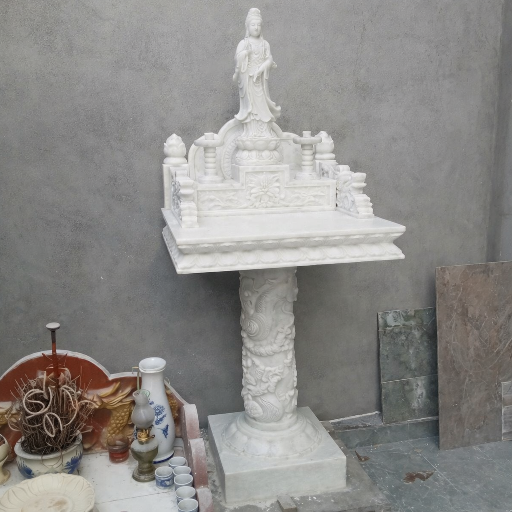 Tham Khảo : Mẫu Bàn Thờ Thiên Đá Trắng Tự Nhiên Nguyên Khối