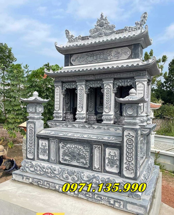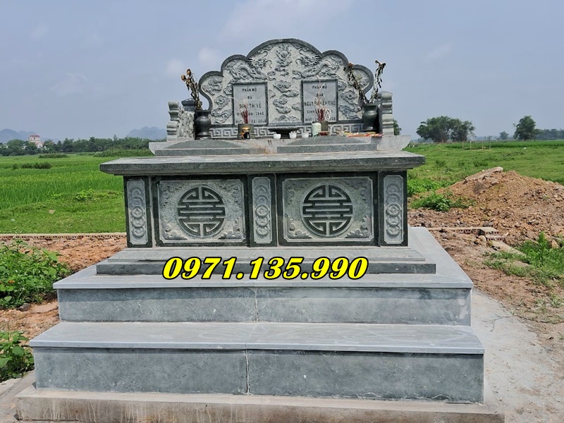 • Mộ Đôi Đá xanh rêu Ninh Bình: Màu sắc trang nhã, chạm khắc đẹp, độ bền cao.
