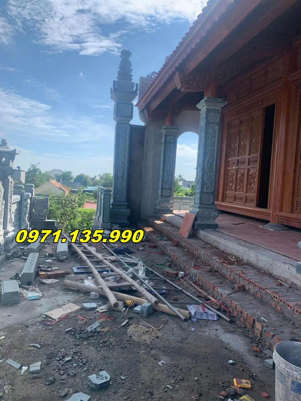| Cột đồng trụ cao cấp (đầu nghê, đài sen, chạm 4 mặt) | 5 – 6m | Đá xanh Thanh Hóa, đá trắng | 70.000.000 – 120.000.000 |