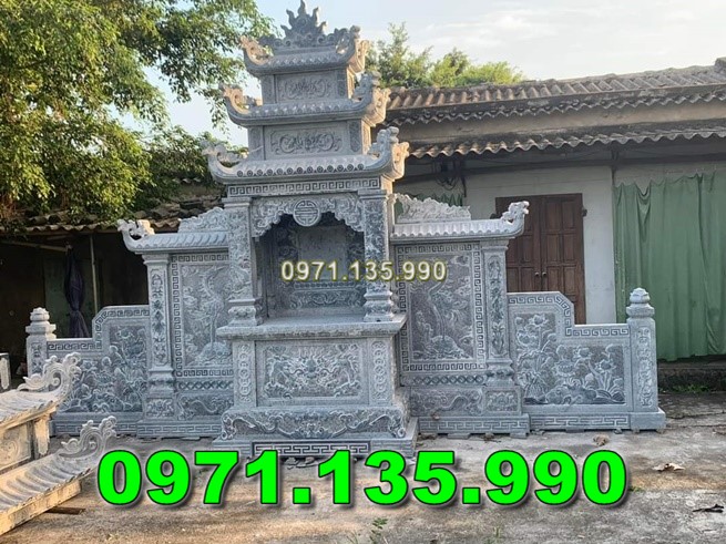 Mẫu lăng thờ chung – Am thờ – Củng Thờ – Kỳ Đài Thờ – Lầu Thờ bằng đá đẹp nhất hiện nay với mẫu đơn giản một mái, hai hay ba mái che. Mẫu lăng thờ đá thường được chọn kích thước dựa trên số đỏ cung hoàng đạo trên thước lỗ ban.
