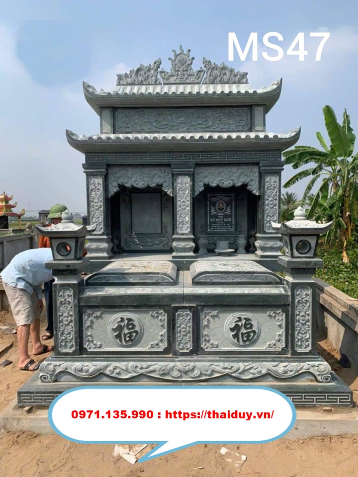 • Mộ Đôi Đá xanh rêu Ninh Bình: Màu sắc trang nhã, chạm khắc đẹp, độ bền cao.