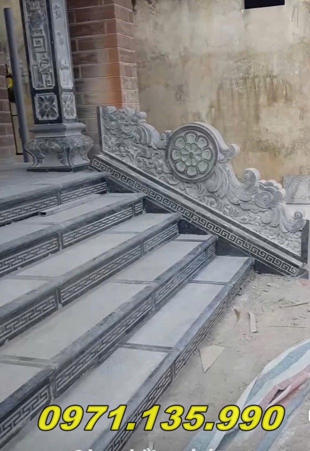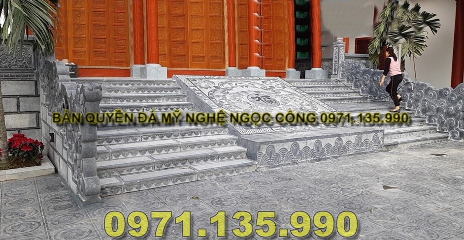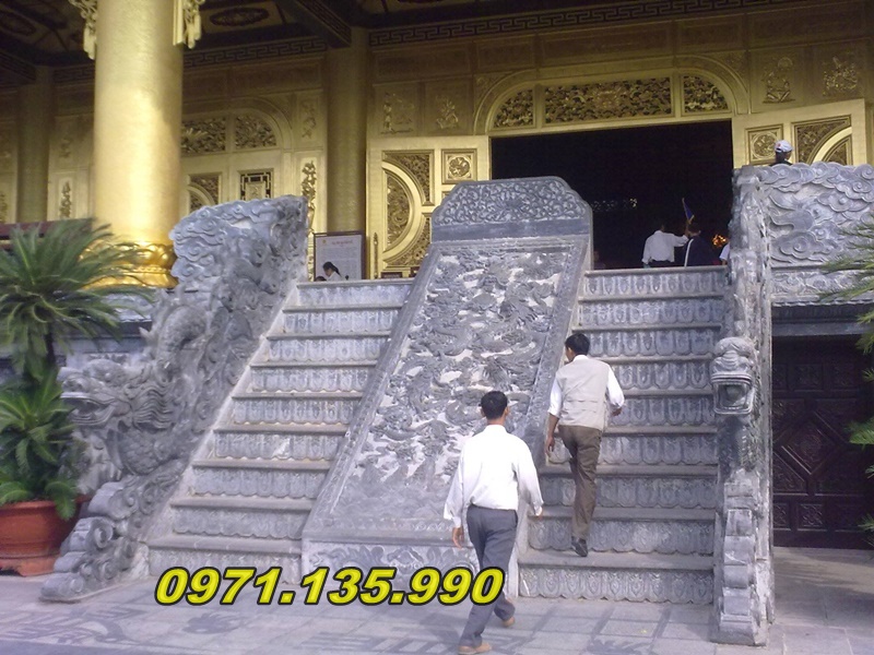 Bên hông bậc: Có thể gắn lan can đá, cột đồng trụ, chiếu rồng đá, tạo tổng thể uy nghi, trang trọng.
