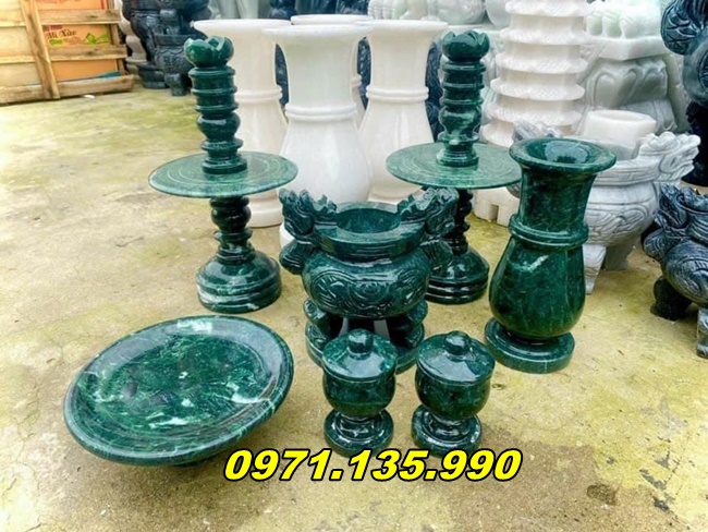 - Đá ngọc: Một số bộ bát hương và lư hương được chế tác từ đá ngọc, như ngọc bích, mang lại vẻ đẹp sang trọng và quý phái. Loại đá này không chỉ có giá trị thẩm mỹ cao mà còn có ý nghĩa phong thủy tốt, mang lại may mắn, tài lộc cho gia chủ.