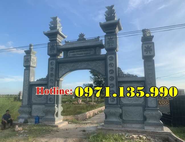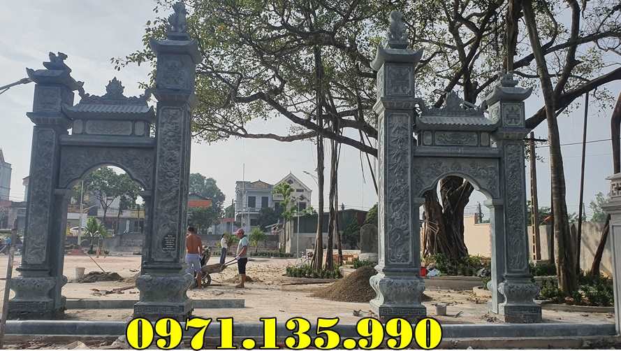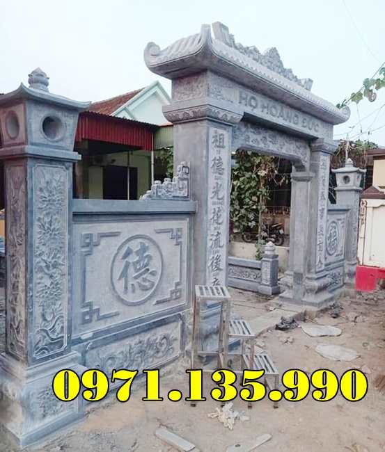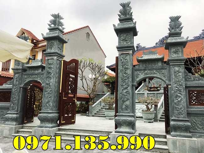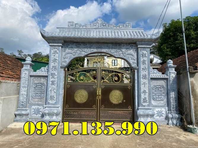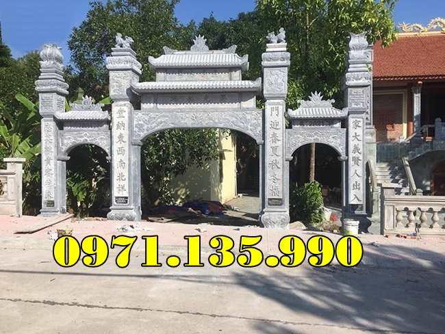 39 Mẫu Cổng Đá Đẹp Bán tại Vĩnh Long | Giá Cổng Đá Đơn Giản Nguyên Khối còn có được gọi cổng tam quan tứ trụ nhà thờ họ gia tộc, từ đường, đình đền chùa miếu bằng đá, hay cổng tam quan đẹp, được làm từ đá tự nhiên nguyên khối, với các mẫu đá khác nhau như đá xanh đen, đá xanh rêu. Những mẫu cổng đẹp, có những mẫu thiết kế hiện đại phù hợp với từng không gian diện tích lắp đặt khác nhau. Mẫu cổng đá tam quan được chạm điêu khắc hoa văn rồng phượng hay chạm cảnh tùng cúc trúc mai, cùng câu đối. Kích thước cổng nhà thờ họ hay tư đường được lấy dựa trên số đỏ cung hoàng đạo trên thước lỗ ban 39, tùy theo diện tích không gian lắp đặt cổng sẽ có kích thước khác nhau. Giá cổng nhà thờ họ được tính dựa trên mẫu, kích thước cổng, khối lượng đá, cùng chi phí vận chuyển lắp đặt.