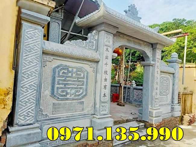- Cổng Tam Quan Đá Chạm Câu Đối Chữ Hán – Mang ý nghĩa sâu sắc trong tâm linh.