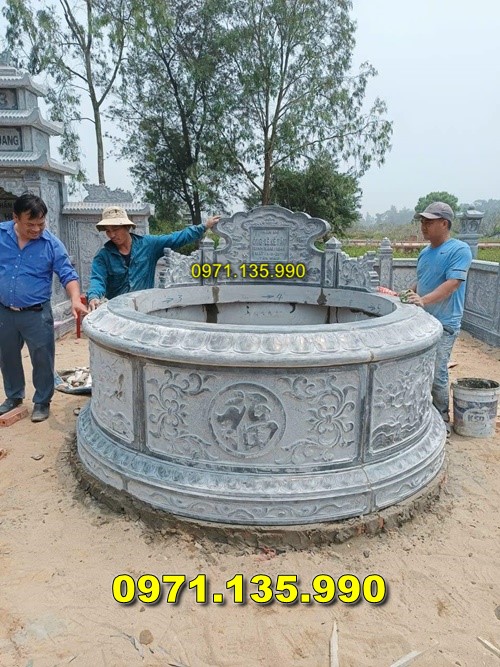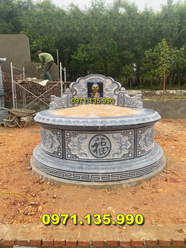 mộ tổ mộ ông bà cha mẹ anh chị em bà cô hình tròn, lục lăng bát giác, có mái che, đơn giản không mái, hai ba bẩy năm cấp. Mẫu mộ đá hình tròn được làm từ đá tự nhiên nguyên khác nhau như: đá xanh, đá ninh bình, đá thanh hóa, đá trắng hay đá vàng. Những mẫu mộ tròn được thiết kế hiện đại, đa dạng mẫu, kiểu dáng, với những mẫu mộ đá làm liền khối hay được ghép lại được với nhau. Mộ tròn bằng đá được chạm điêu khắc những hoa văn tinh xảo với những mẫu hoa văn khác nhau như: rồng phượng, lân ly quy phượng, hay tùng cúc trúc mai, chữ phúc, chữ thọ. Mẫu mộ đá tròn phong thủy được lấy kích thước dựa trên trước lỗ ban 39 chuyên phần âm trạch. Mẫu mộ đá hình tròn được dùng kích thước dựa trên khuôn viên lắp đặt sẽ có kích thước đường kính khác nhau như, 81cm, 89cm, 1m07, 1m27, 1m33, 1m47, 1m55, 1m67, 1m76, 1m81, 1m97, 2m12, 2m67, 2m82,….. Mộ đá hình tròn được bán giá dựa trên mẫu mộ, kích thước, chất liệu đá, cùng chi phí vận chuyển lắp đặt.