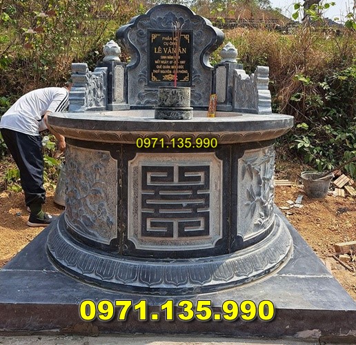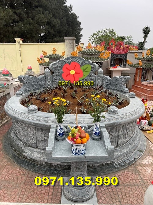 mộ tổ mộ ông bà cha mẹ anh chị em bà cô hình tròn, lục lăng bát giác, có mái che, đơn giản không mái, hai ba bẩy năm cấp. Mẫu mộ đá hình tròn được làm từ đá tự nhiên nguyên khác nhau như: đá xanh, đá ninh bình, đá thanh hóa, đá trắng hay đá vàng. Những mẫu mộ tròn được thiết kế hiện đại, đa dạng mẫu, kiểu dáng, với những mẫu mộ đá làm liền khối hay được ghép lại được với nhau. Mộ tròn bằng đá được chạm điêu khắc những hoa văn tinh xảo với những mẫu hoa văn khác nhau như: rồng phượng, lân ly quy phượng, hay tùng cúc trúc mai, chữ phúc, chữ thọ. Mẫu mộ đá tròn phong thủy được lấy kích thước dựa trên trước lỗ ban 39 chuyên phần âm trạch. Mẫu mộ đá hình tròn được dùng kích thước dựa trên khuôn viên lắp đặt sẽ có kích thước đường kính khác nhau như, 81cm, 89cm, 1m07, 1m27, 1m33, 1m47, 1m55, 1m67, 1m76, 1m81, 1m97, 2m12, 2m67, 2m82,….. Mộ đá hình tròn được bán giá dựa trên mẫu mộ, kích thước, chất liệu đá, cùng chi phí vận chuyển lắp đặt.