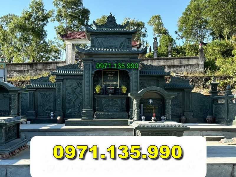 - Đá xanh: Là loại đá phổ biến nhất trong xây dựng lăng mộ và mộ đá do có độ bền cao, dễ chạm khắc và giá cả hợp lý.