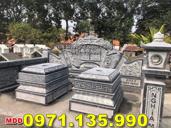 Mộ đá đôi là một dạng mộ được thiết kế đặc biệt dành cho hai người, thường là vợ chồng hoặc những người thân yêu trong gia đình, để thể hiện sự gắn kết vĩnh cửu trong cuộc sống. Mộ đá đôi không chỉ là nơi lưu giữ linh hồn người đã khuất mà còn là biểu tượng của tình yêu thương và sự tôn kính dành cho tổ tiên. Được làm từ những khối đá tự nhiên, mộ đá đôi mang lại sự bền vững, chắc chắn qua thời gian và thể hiện lòng thành kính, trân trọng của con cháu đối với những người đã khuất.