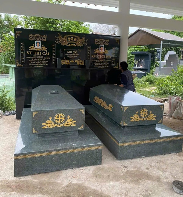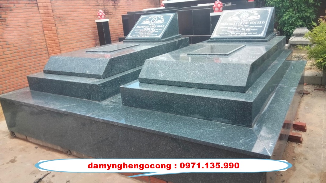 - Đặc điểm nổi bật: Chất liệu đá bền bỉ, chạm khắc đẹp mắt, bảo vệ mộ phần khỏi tác động của thời tiết.