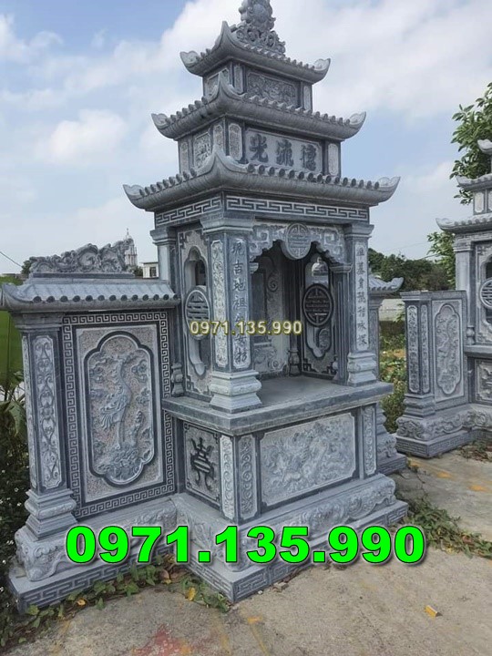 Mẫu lăng thờ chung – Am thờ – Củng Thờ – Kỳ Đài Thờ – Lầu Thờ bằng đá đẹp nhất hiện nay với mẫu đơn giản một mái, hai hay ba mái che. Mẫu lăng thờ đá thường được chọn kích thước dựa trên số đỏ cung hoàng đạo trên thước lỗ ban.