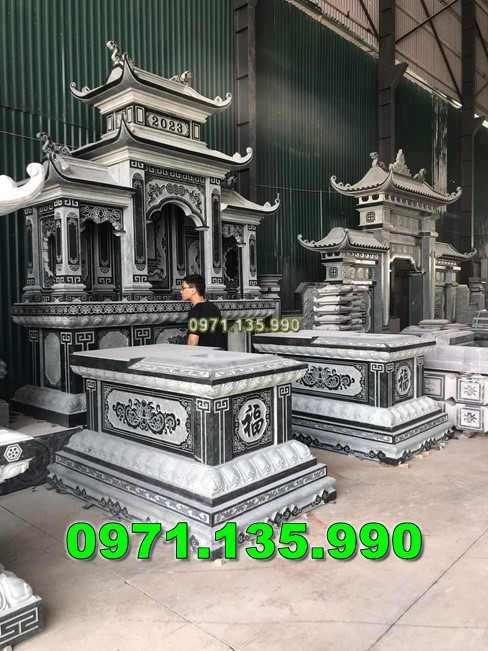 Mẫu lăng thờ chung – Am thờ – Củng Thờ – Kỳ Đài Thờ – Lầu Thờ bằng đá đẹp nhất hiện nay với mẫu đơn giản một mái, hai hay ba mái che. Mẫu lăng thờ đá thường được chọn kích thước dựa trên số đỏ cung hoàng đạo trên thước lỗ ban.