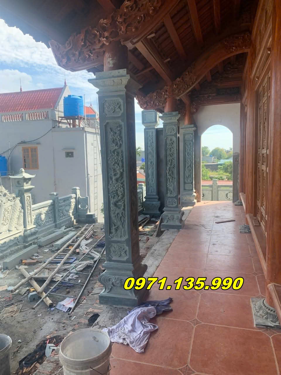 | Cột đồng trụ cao cấp (đầu nghê, đài sen, chạm 4 mặt) | 5 – 6m | Đá xanh Thanh Hóa, đá trắng | 70.000.000 – 120.000.000 |