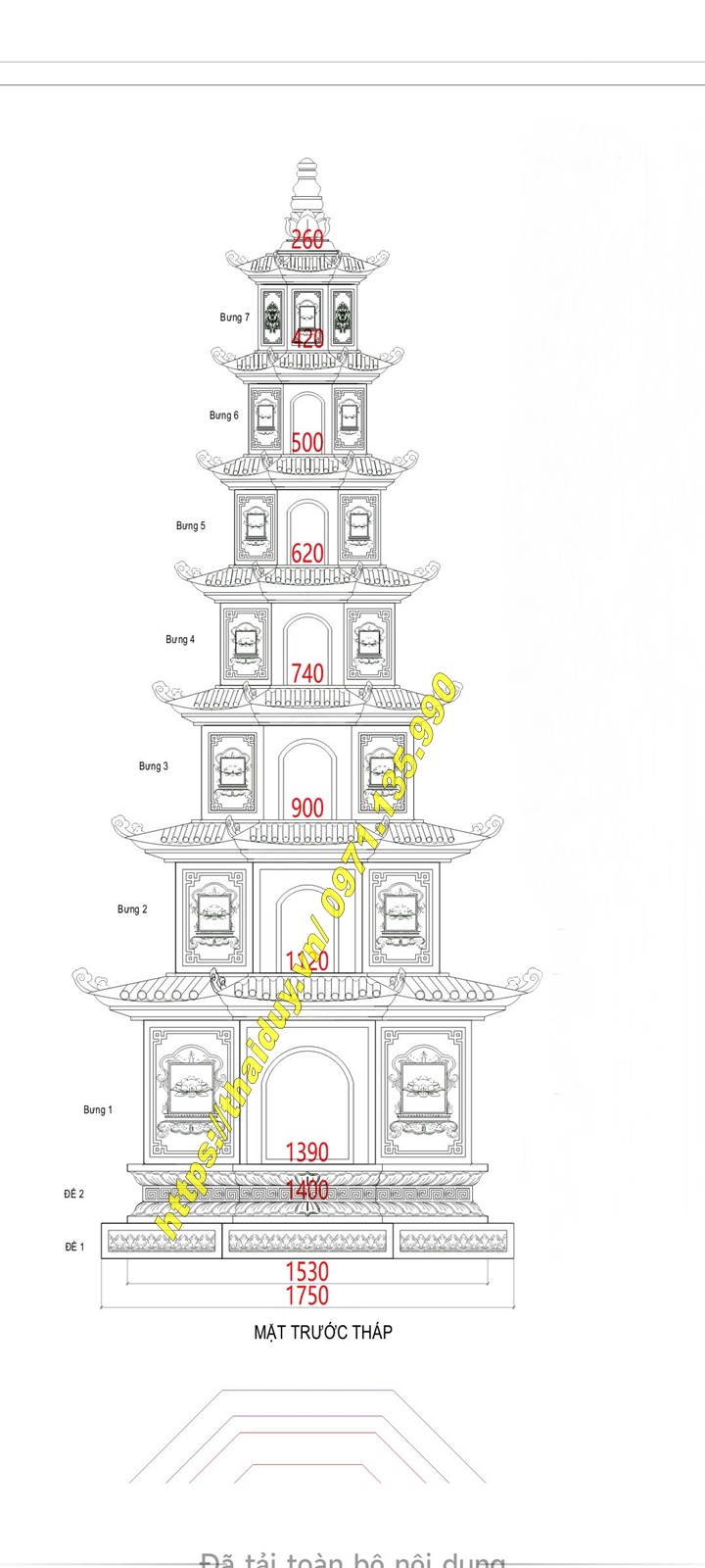 Đế là phần quan trọng, tạo sự vững chãi cho tháp. Kích thước đế thường dựa theo Thước Lỗ Ban phong thủy và phù hợp với diện tích khuôn viên đặt tháp.